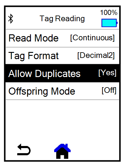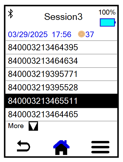 The RFID scanner Green scanner icon icon at the top left side of any screen in the mobile app shows the current connection status: a green icon Green scanner icon indicates that the scanner is connected and a red icon Red scanner icon indicates that the scanner is not connected. On the More tab, tap RFID Scanner to pair a device with the mobile app.