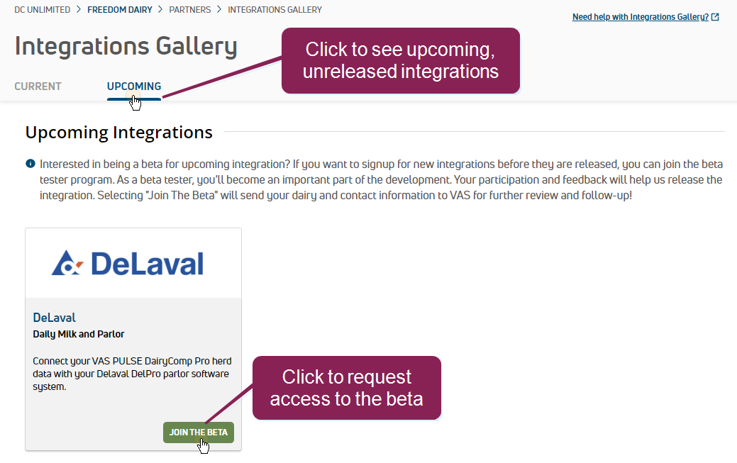On the Upcoming tab, you can join betas for one of our new, exciting integrations or simply learn more about what's coming out next.