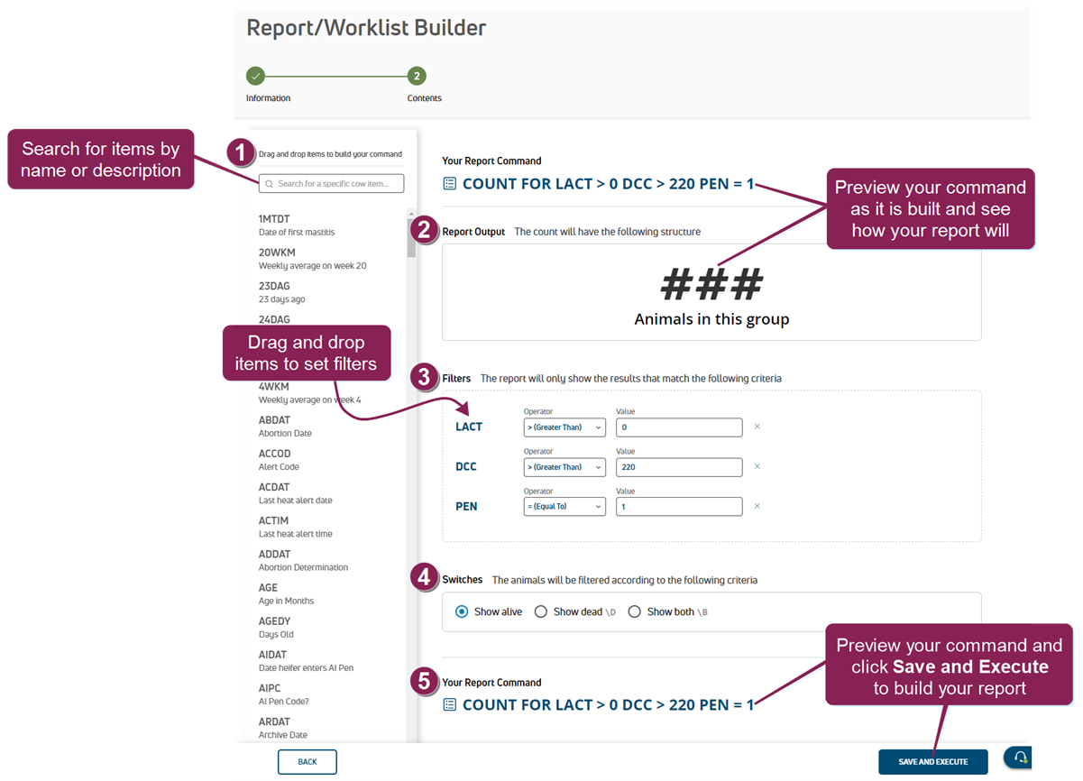 A COUNT report in PULSE calculates the total number of animals that match certain items and conditions.
