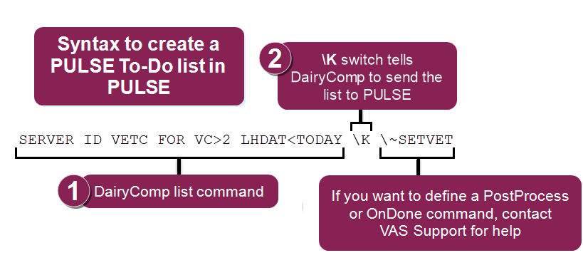 DairyComp 305 - VAS Dairy Management Software with the \K switch and then send them to PULSE