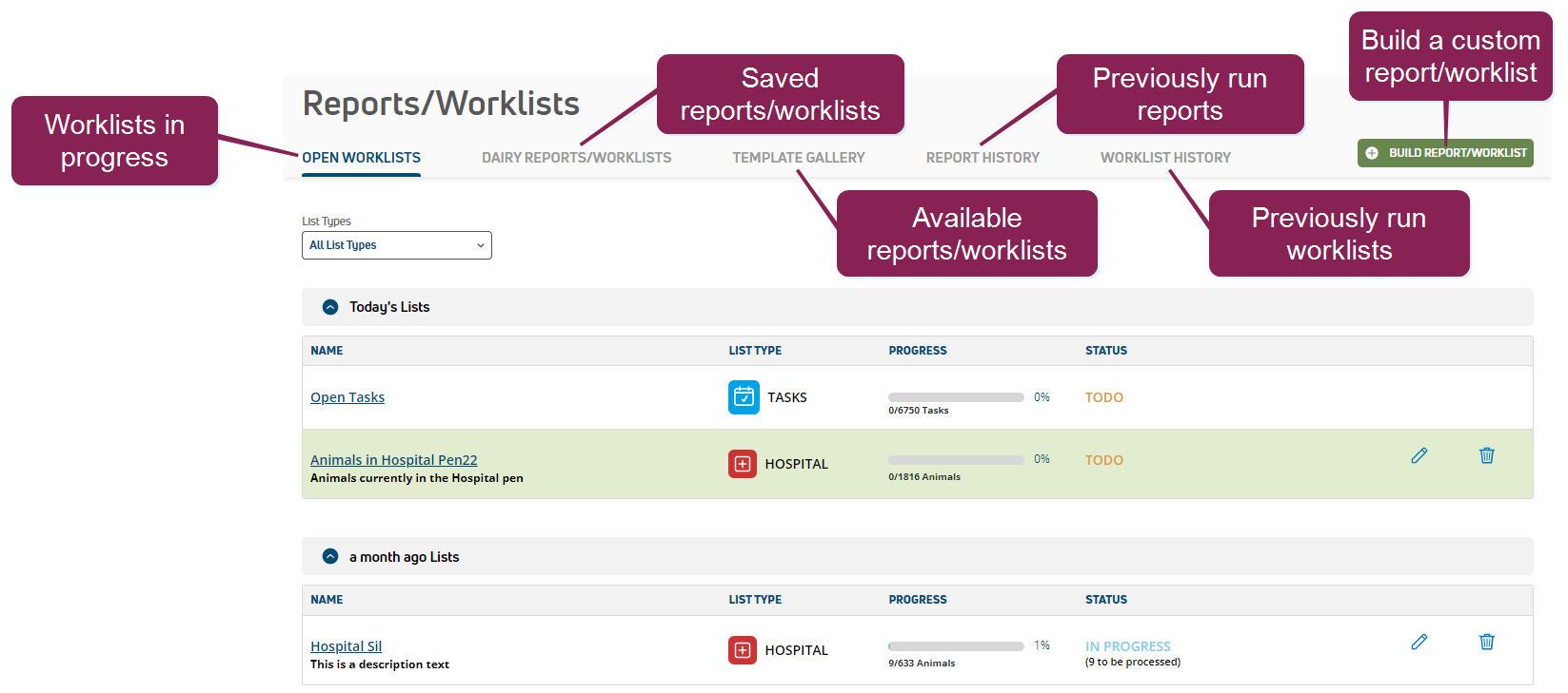 You can find this feature under the DairyComp/MyDC > Reports/Worklists menu. See the topics below to learn more: