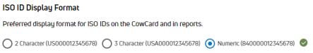 ISO ID Display Format: Select the preferred display format used by your dairy for ISO IDs on the CowCard and in reports.