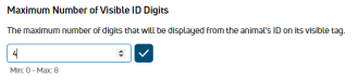 Maximum Number of Visible ID Digits: In this field, enter the maximum number of digits to be displayed from the animal's ID on its visible tag.