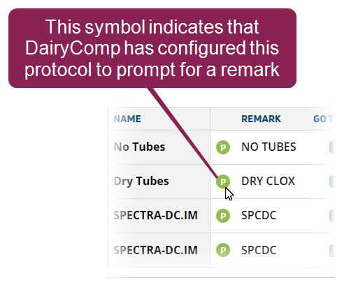 - Prompt for Remark: Defines whether DairyComp prompts the user to enter a remark for this protocol.