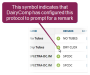 is displayed in this column, it means that the system is configured to prompt the user to enter a remark for this protocol.