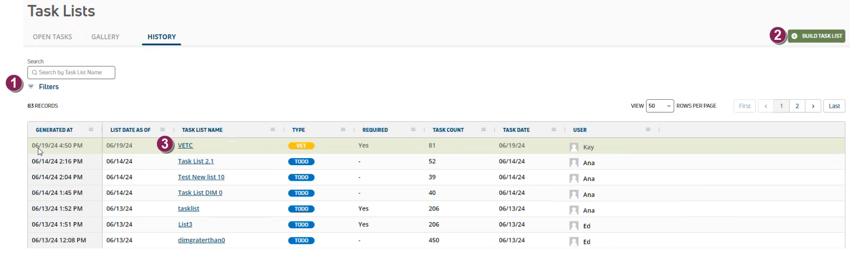 - Click Build Task List to build and add a new task list to the gallery. See Build a Task List to learn more about creating task lists.