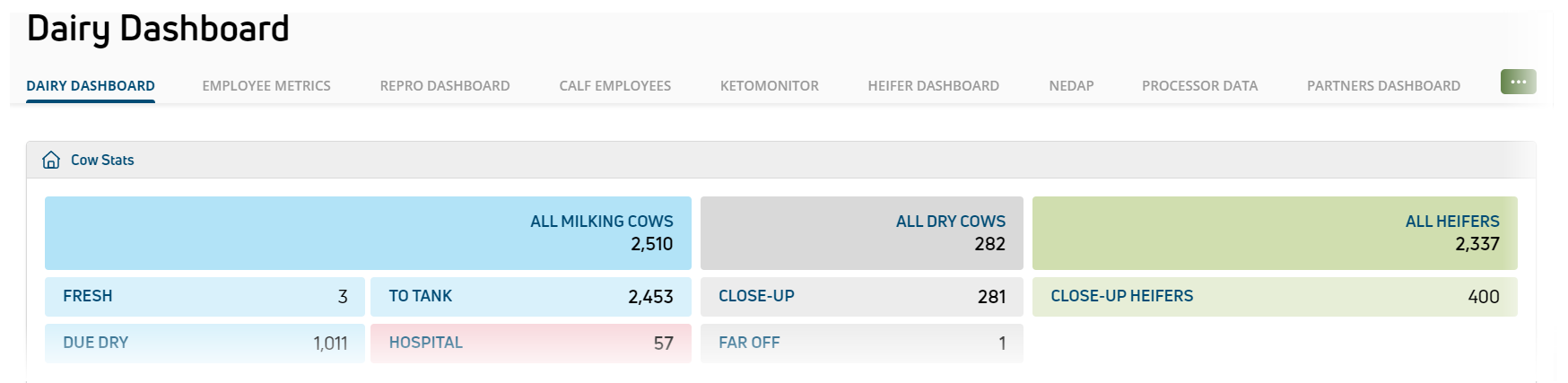 Each dashboard provides different information to help you better manage your dairy. Learn more about each dashboard type: