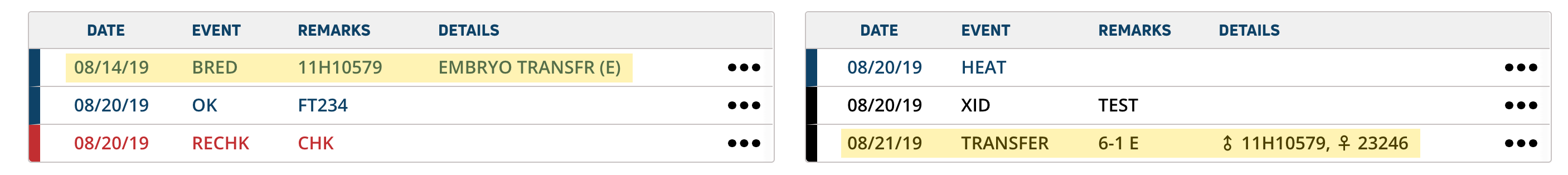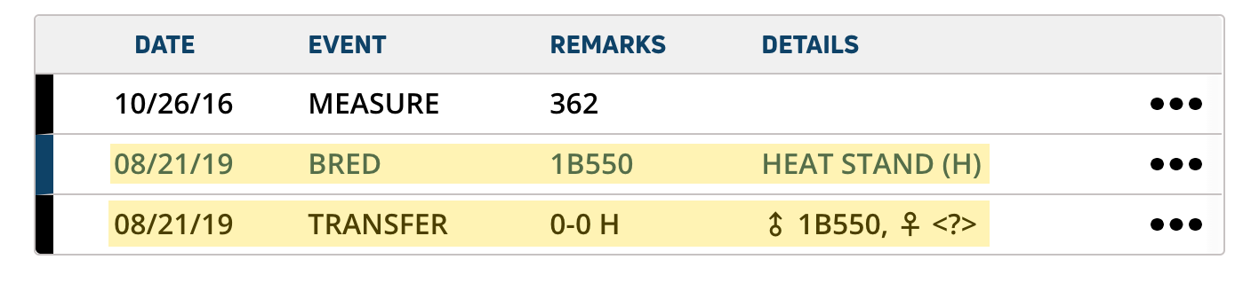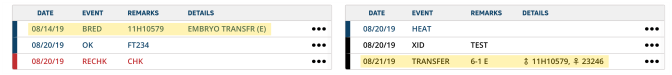The BRED event records when an animal is bred using artificial insemination or mates with a bull. Expand the sections below to learn more: