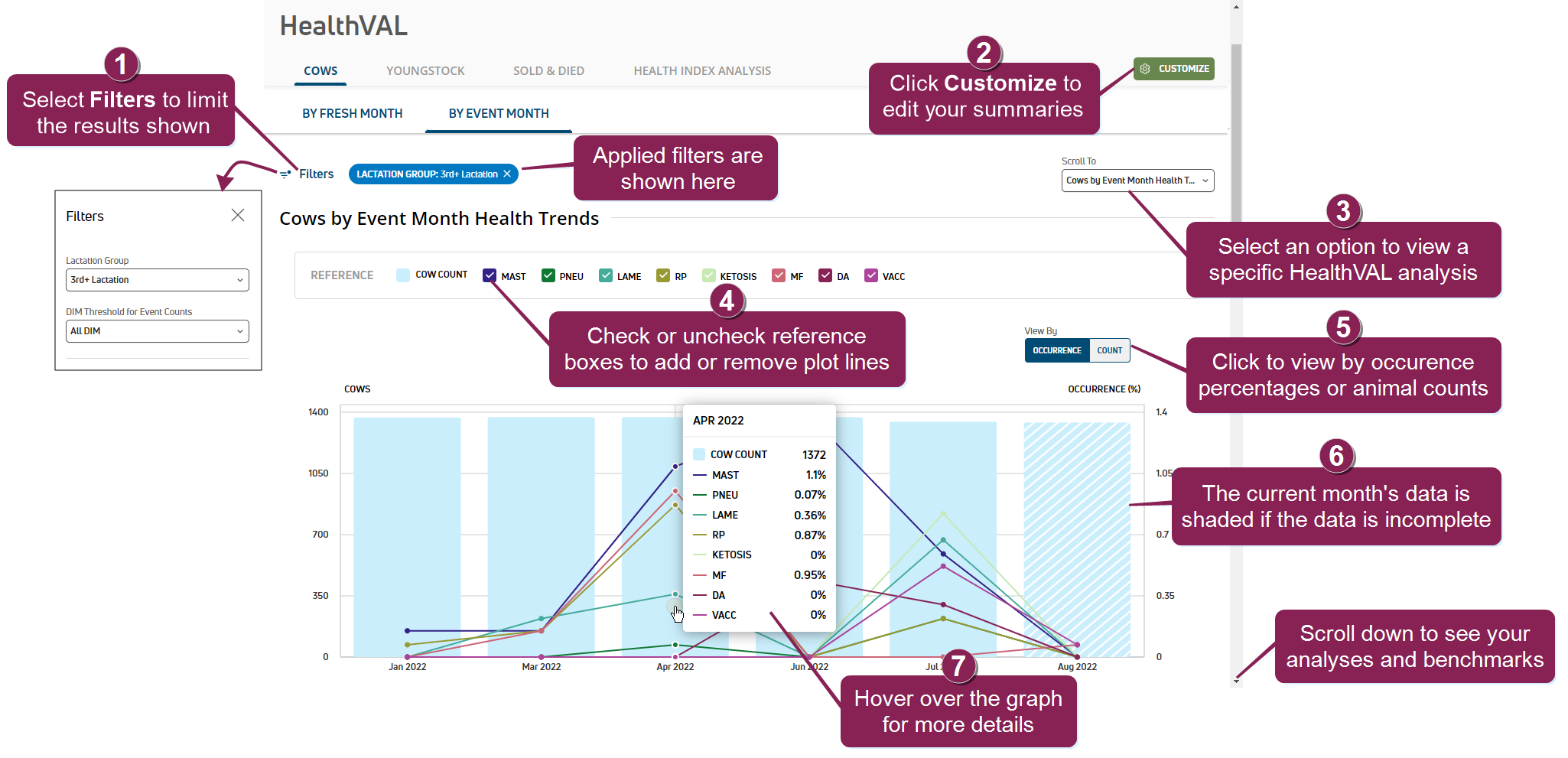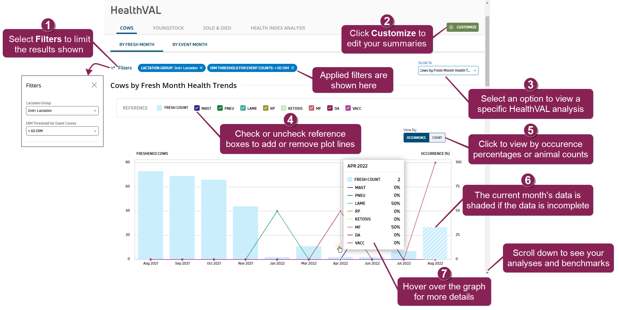 By Fresh Month: Monthly health event data for all cows by month fresh.