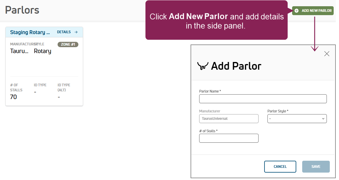 - Click Add New Parlor at the top of the page to add your parlor.
