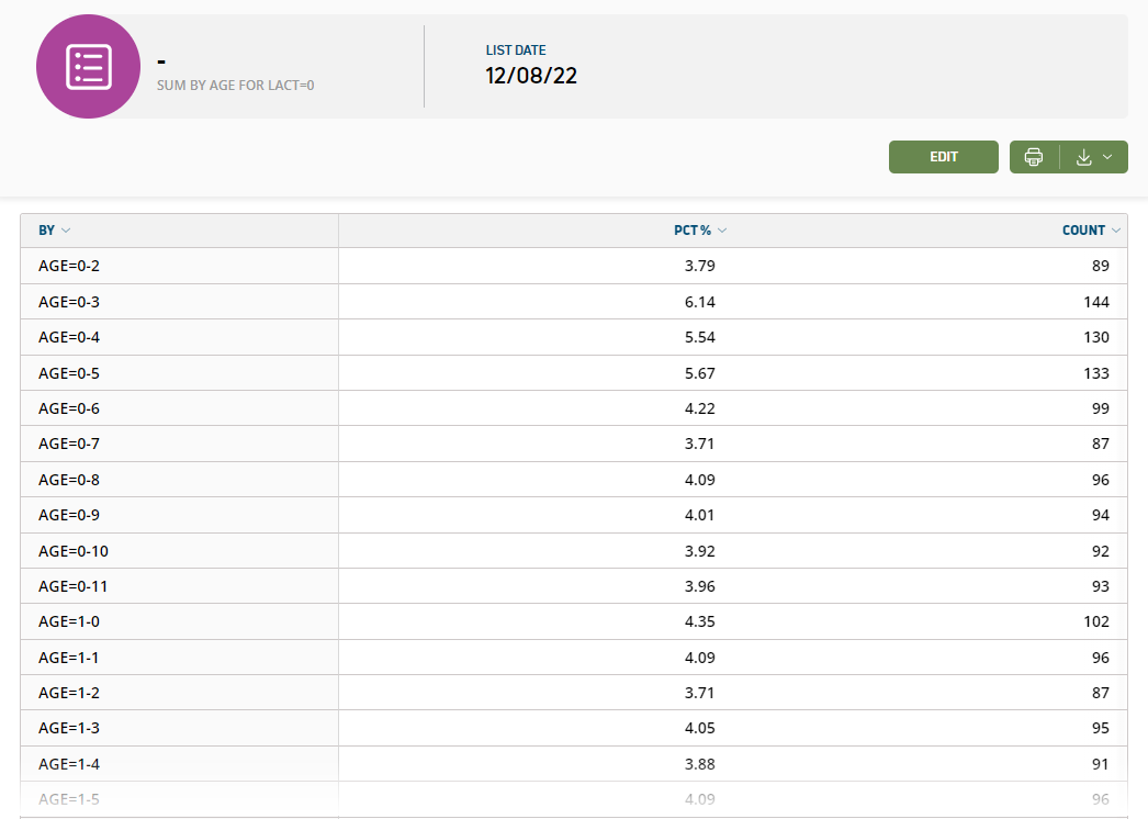 - Animal counts