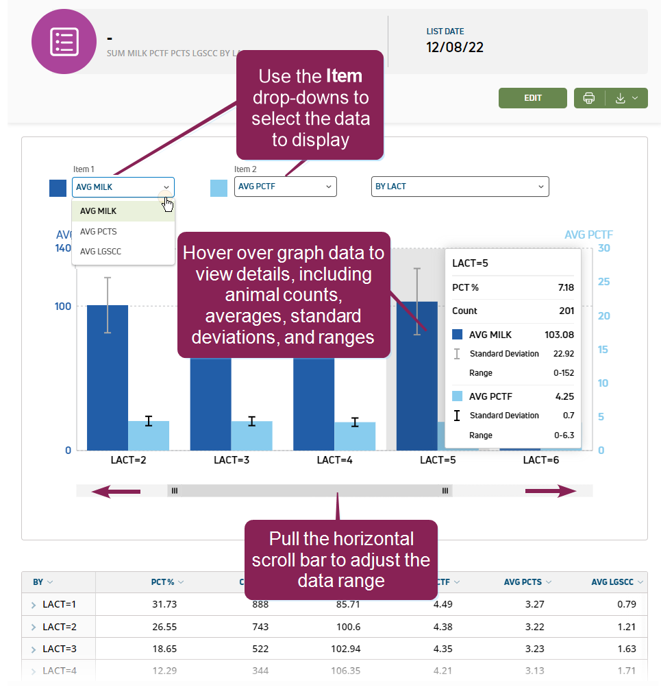 - Data range details, including minimum and maximum values