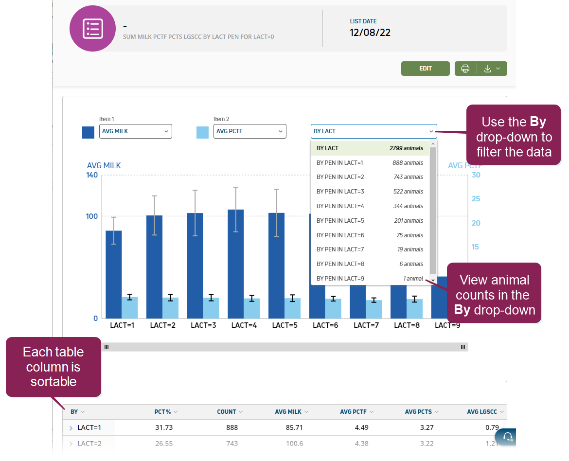 Additionally, each of the table columns allows for sorting to quickly customize your data view.