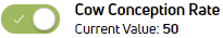 - Cow Conception Rate: % of positive pregnancies / total number of inseminations for cows (LACT