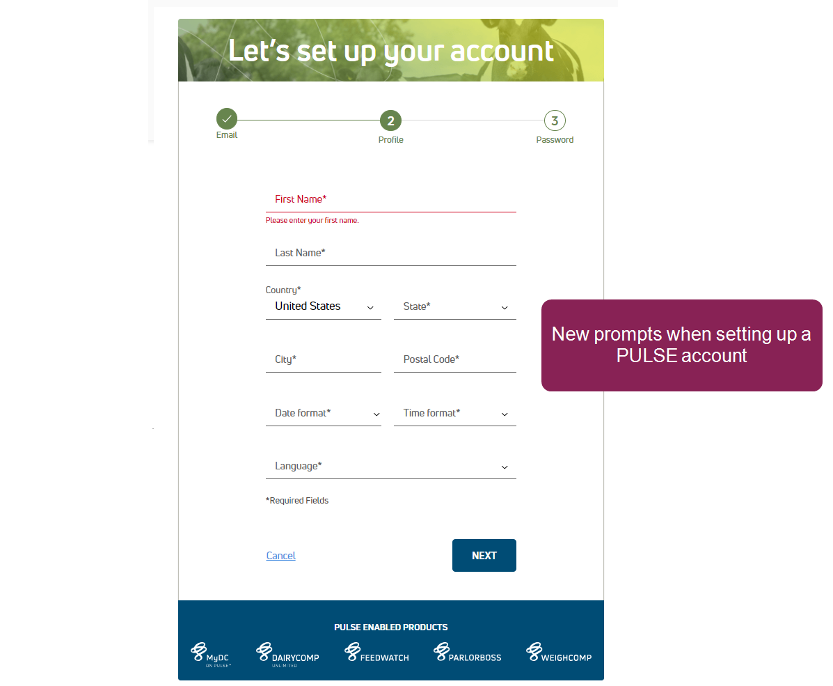 ENHANCEMENT New users are automatically prompted to enter their preferred account settings. When a user creates a PULSE account, the system automatically prompts them to set their preferred measurement units (imperial or metric), date/time format, and language. This is a usability improvement, as new users won't need to navigate to Account Settings manually.