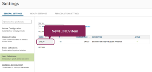 MyDC ONLY ENHANCEMENT New item for OvSynch! MyDC dairies have a new item, ONOV, which can be used for animals enrolled in an OvSynch Protocol.