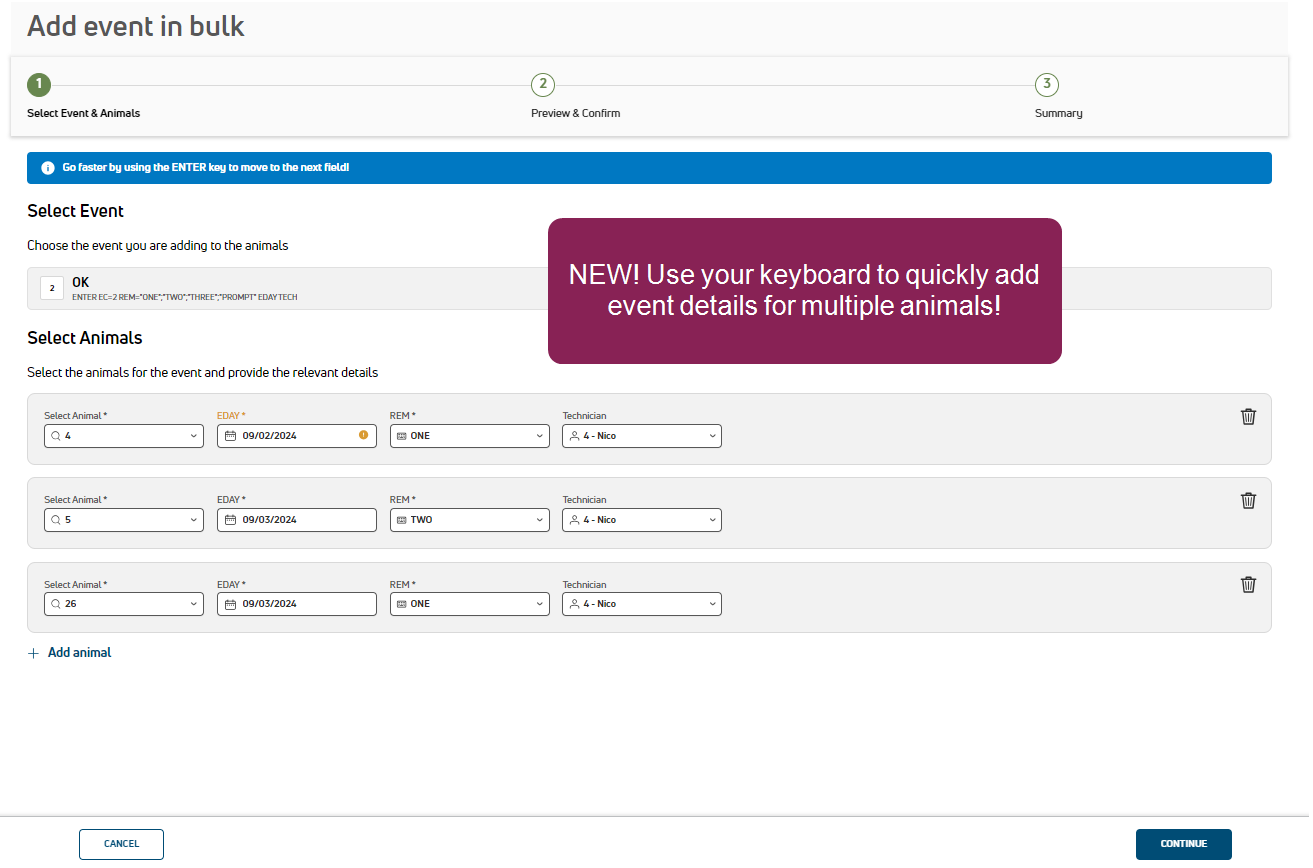 Check out the video tutorial for this feature or see Quickly Add an Event to Multiple Animals to learn more!