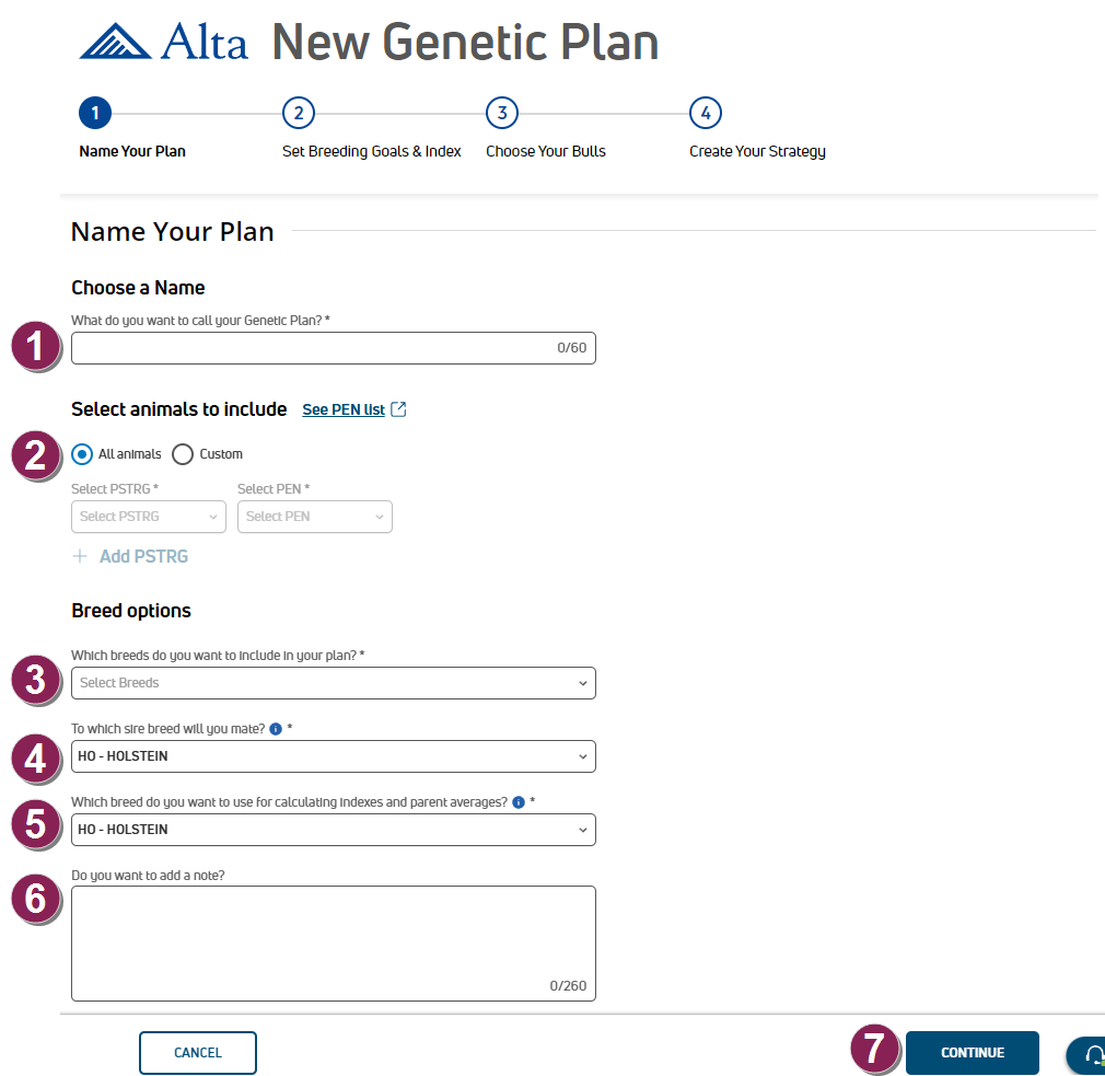 - Add a descriptive name. For example, you may choose to include the animals the plan applies to and the date: Heifers - Q4 2024. Descriptive names will make sorting through plans easier as more plans are added.