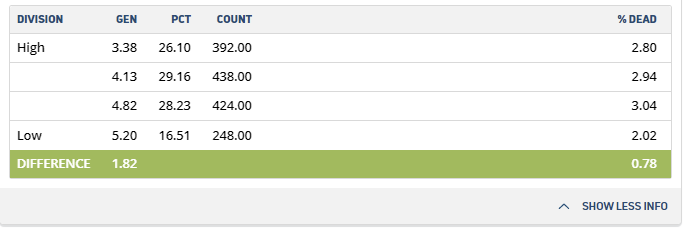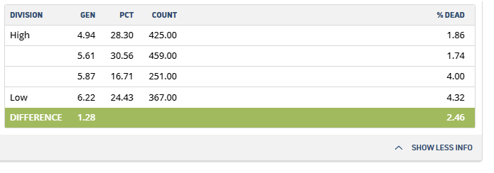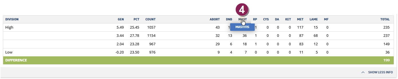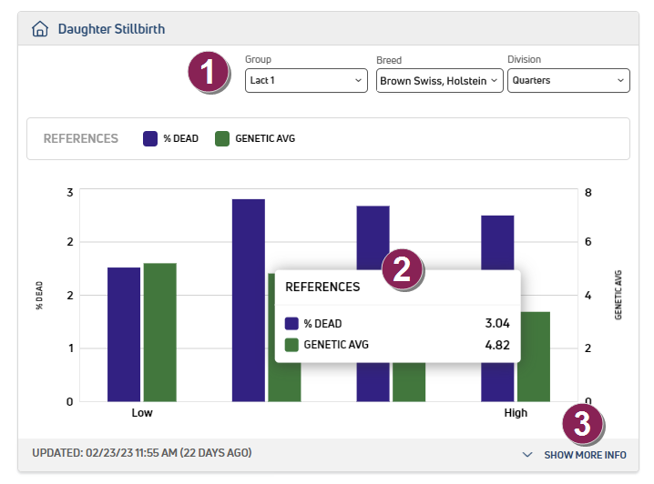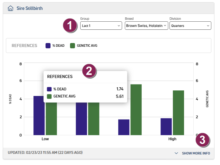 - Click Show More Info to view sire stillbirth data by division in a table format.