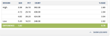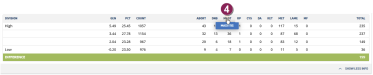 - Hover over event abbreviations to view their full name, or click the column header to sort the data by that event.