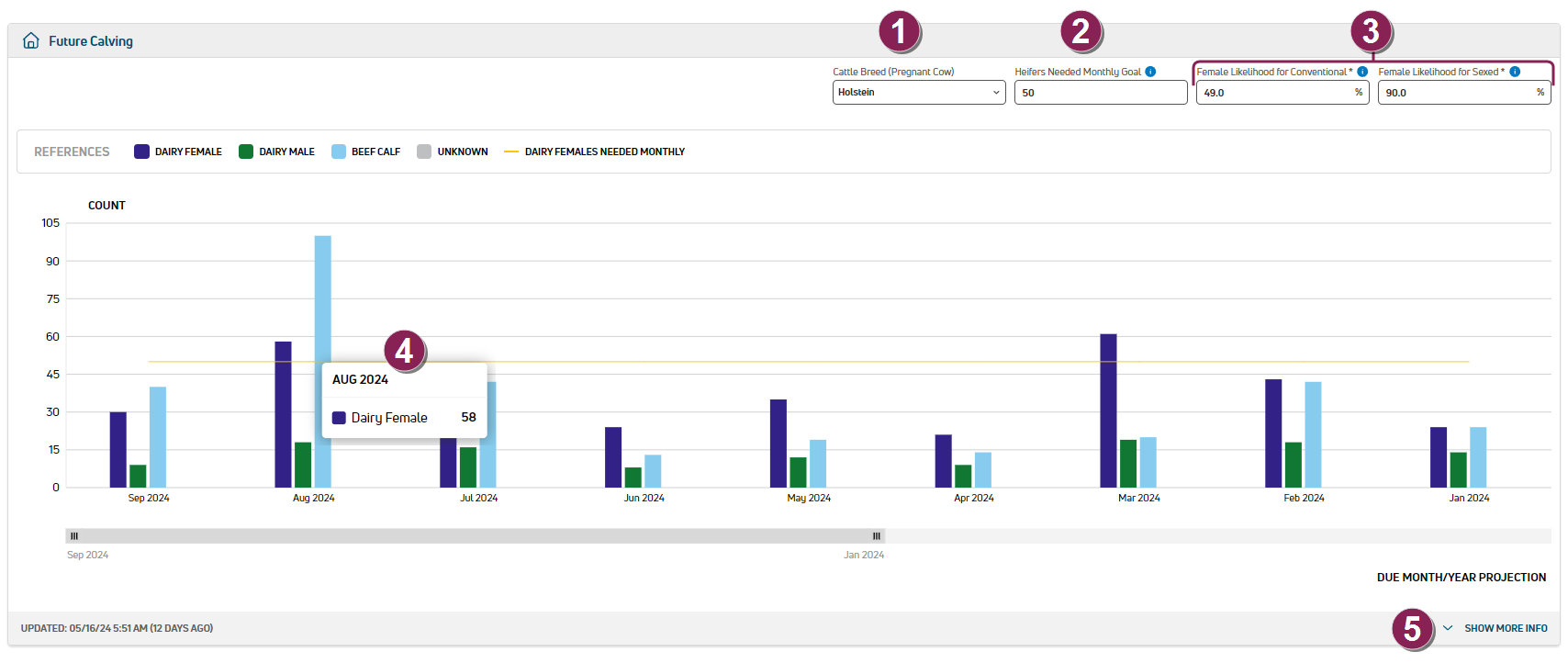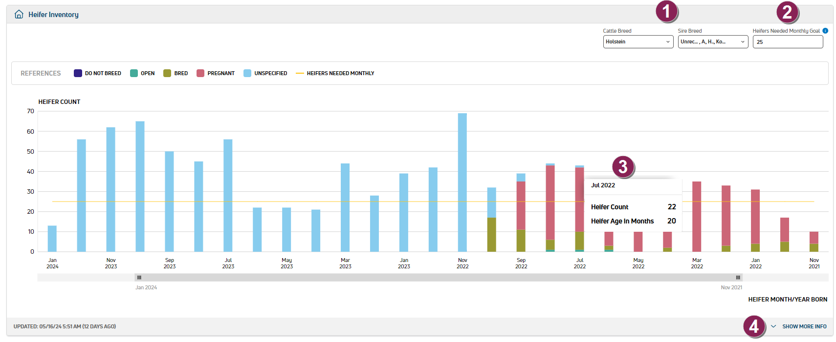 - Enter a value for Heifers Needed Monthly to show a threshold line in the graph.