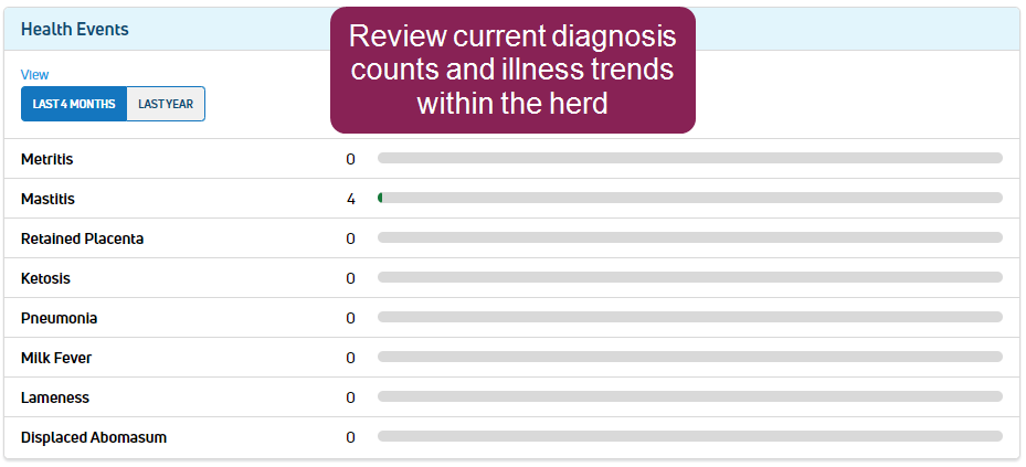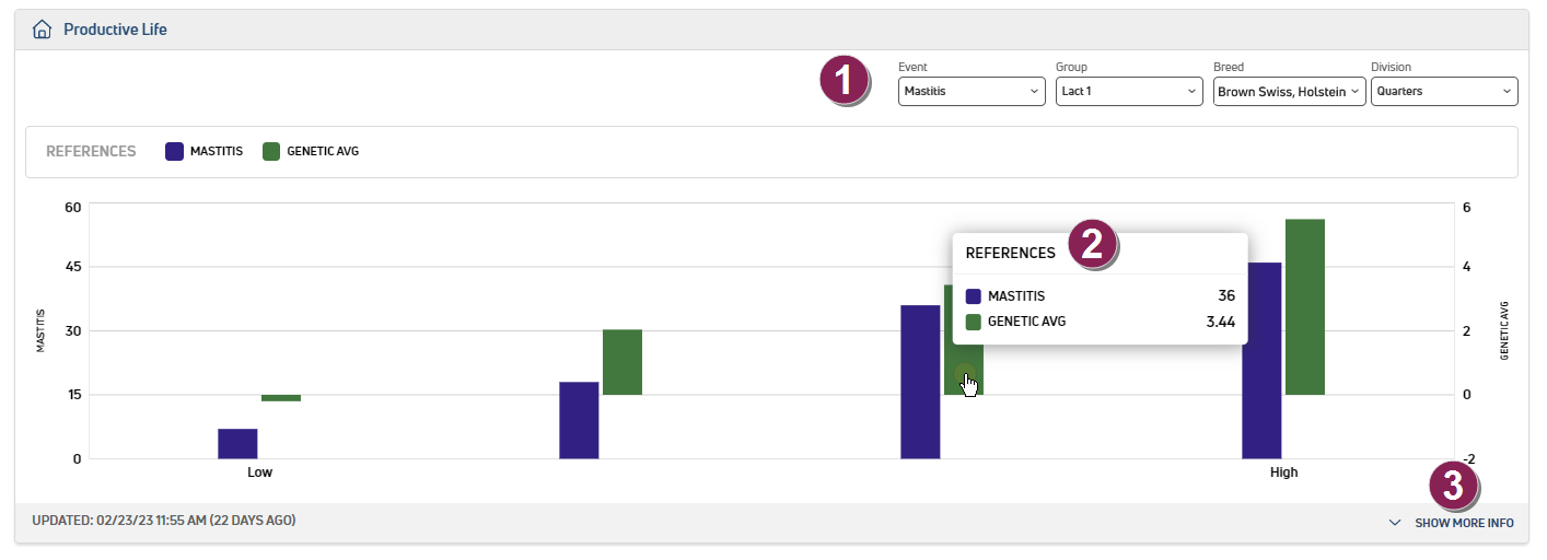 - Use the filters to manage the animals that you see in the graph. You can choose to show cows, heifers, or both.