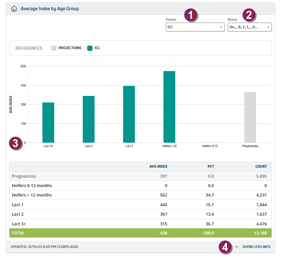- Select the Index type you want to view. These indexes match those available in Step 2: Set Breeding Goals & Index.