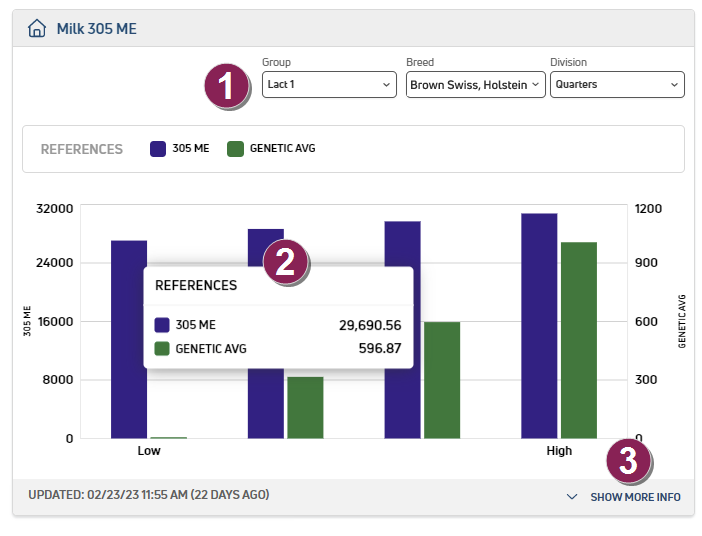 Use this widget to analyze 305 day mature equivalent milk production (305ME