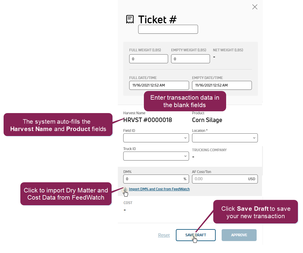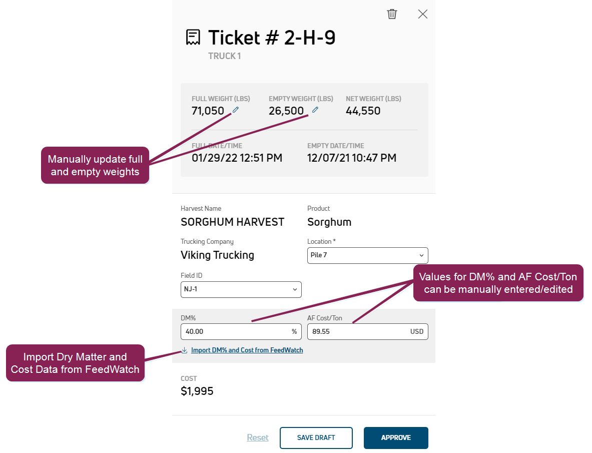The Harvest Management feature allows you to manage all of your dairy's harvests. Each new harvest is created in the WeighComp app, and data for each harvest load is captured on the app by a scale attendant. The harvest can then be viewed and managed in PULSE.