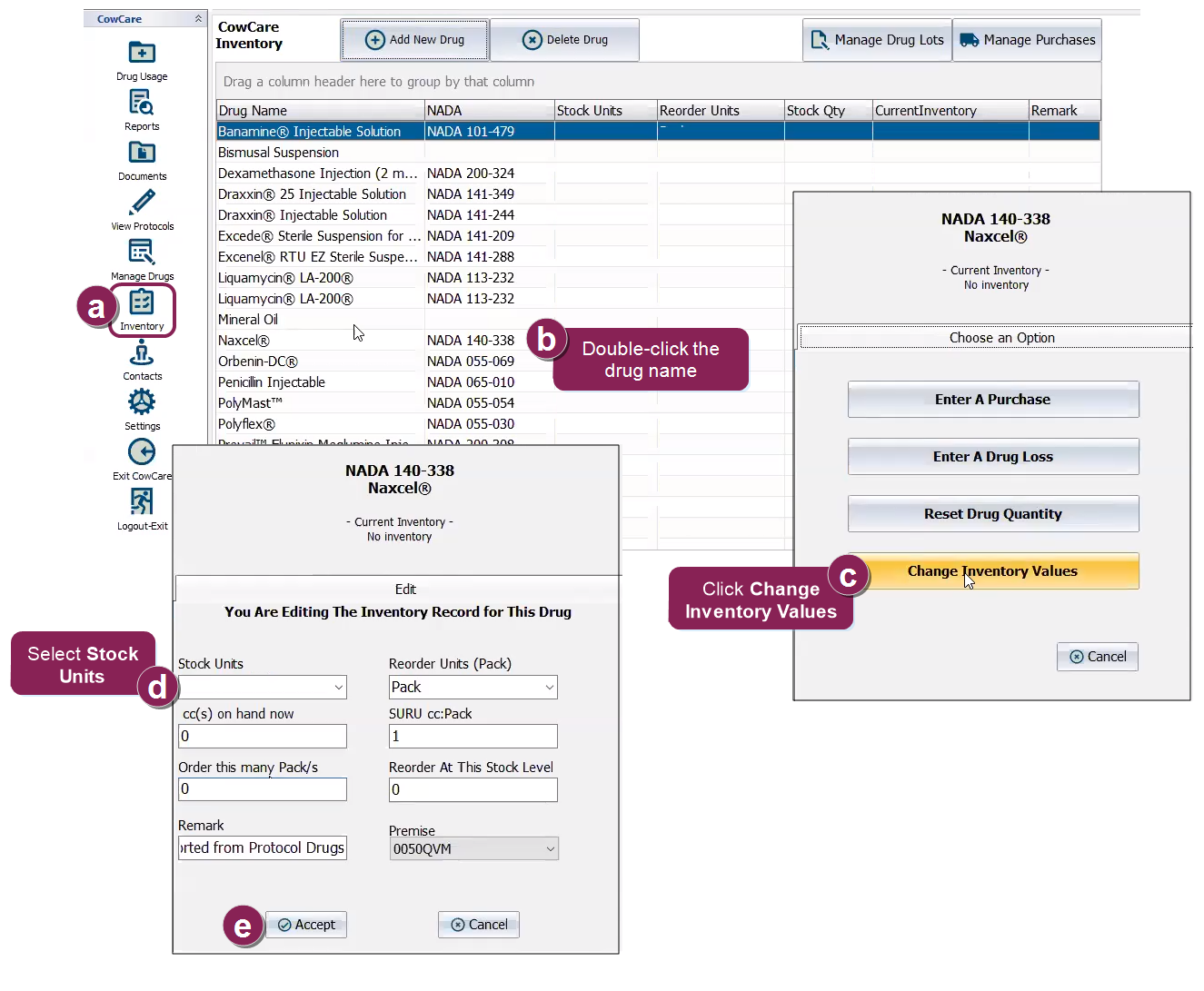 in DairyComp 305. - Check the Use CowCare Inventory option on the Settings > Inventory tab: